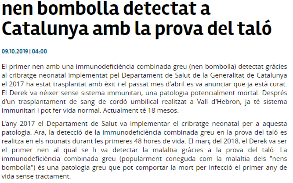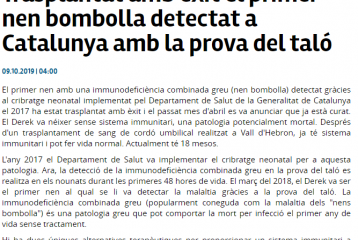 - http://www.diarideterrassa.es/espaisolidari/2019/10/09/trasplantat-amb-exit-primer-nen/121486.html?fbclid=IwAR1qbd3OVuruJI4q_K69nZCjM-aRkb-HGQ01FrbdXc196lXAEpOA7wNlWD0