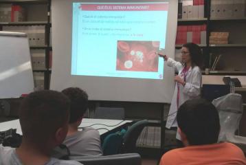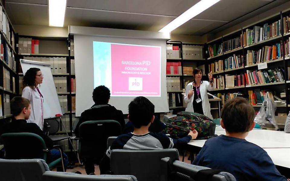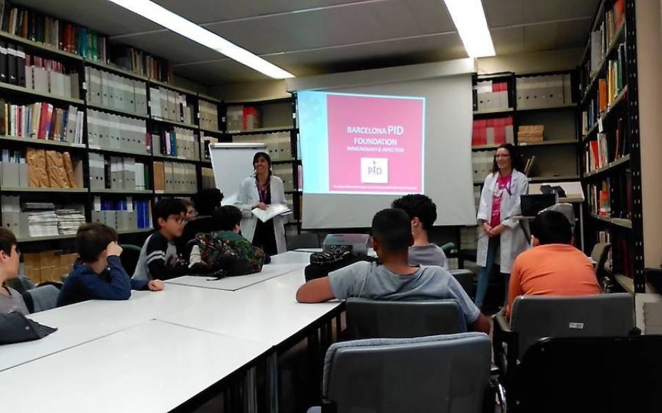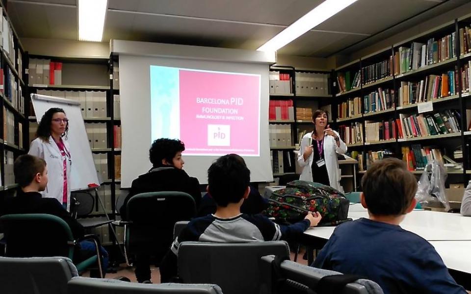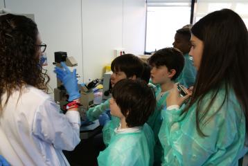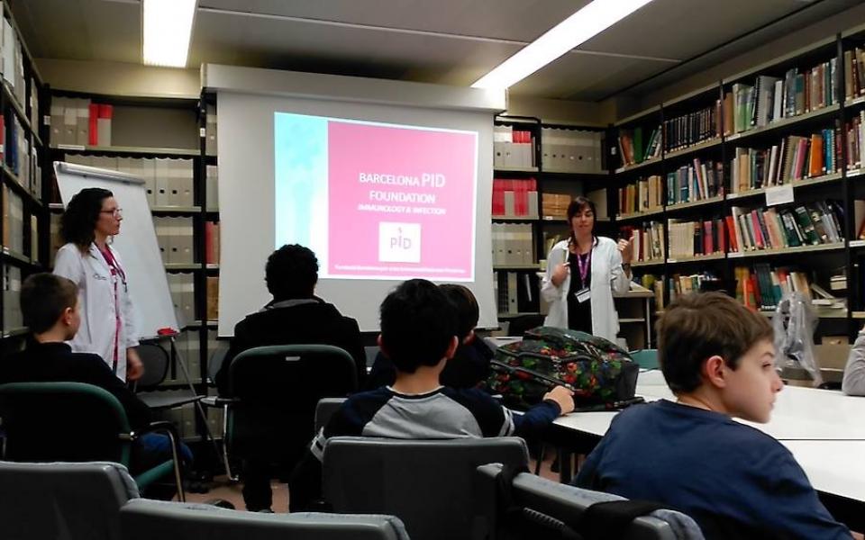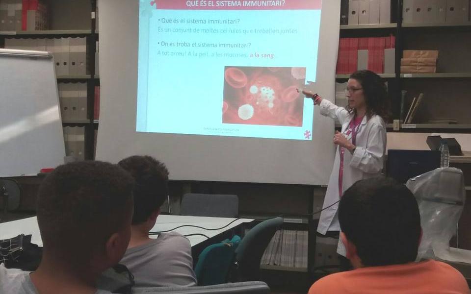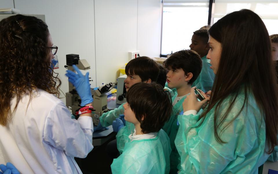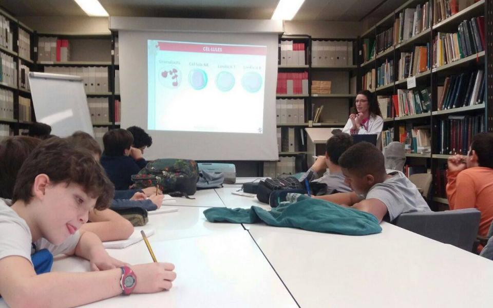Els alumnes del projecte "Crea" van poder veure el Laboratori d'Immunologia de la Vall d'Hebron, on se'ls hi va explicar què és el sistema immunitari, en què consisteixen les IDP, i van poder endinsar-se una mica al món de la ciència mirant cèl·lules dels sistema immunitari a través de microscopis i ser cienífics per un dia.