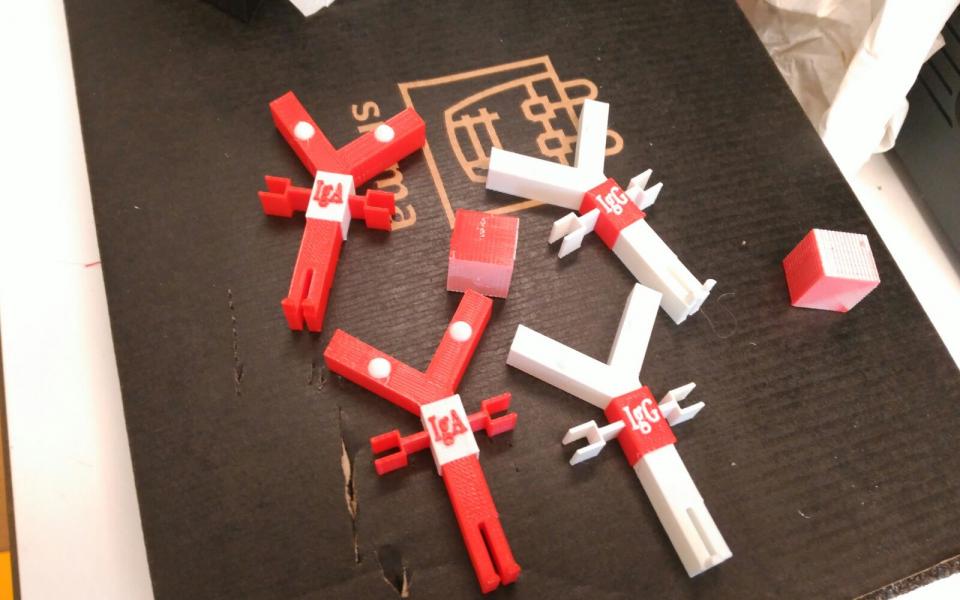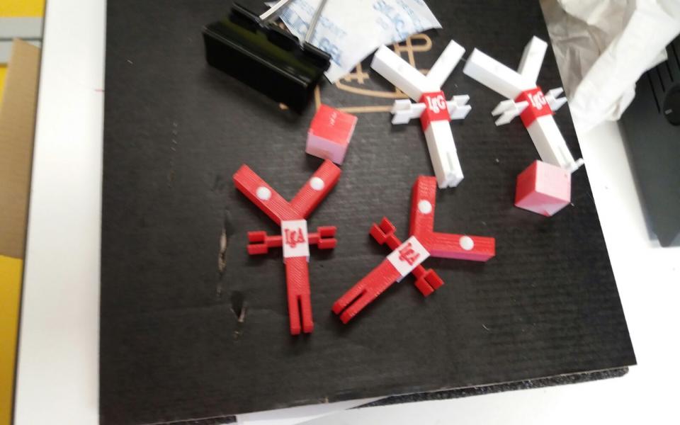 On March 23rd we visited Infant Jesus - Jesuites St Gervasi school to know how the project CREA17 was going, and to help with doubts and questions. Students explained us how they designed each component of the immune system, showed us the 3D designs on the computer, the 3D printer and we saw the first printed figures:IgG and IgA!