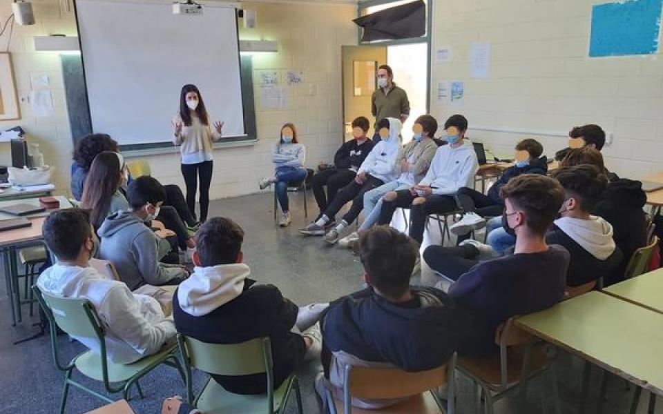Last Wednesday, December 15, Sonia (psychologist of the Adult Immunology Service) and Laura (psychologist of UPIIP), both from Vall d'Hebron Barcelona Hospital Campus, attended Matadepera Secondary School to carry out workshops related to Mental Health, framed within the program of activities of La Marató de TV3 that this educational center develops. This year, the TV3 Marathon fights to make Mental Health visible in different areas.