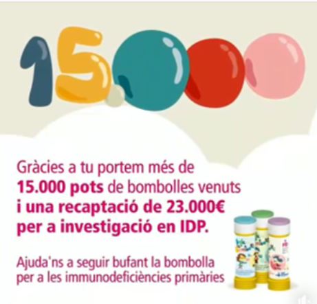 Gracias a ti llevamos más de 15.000 botes de burbujas vendidos y una recaudación de 23.000 € por la investigación en IDP.